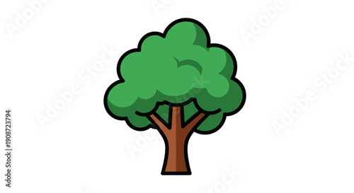 Simple Cartoon Green Tree with Brown Trunk on Isolated White Background