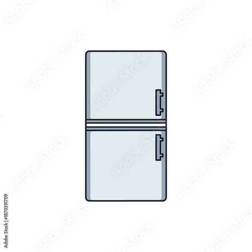 Simple flat design icon of a modern two-door refrigerator, ideal for depicting kitchen appliances, fresh food storage, and cooling technology concepts