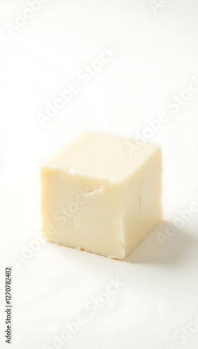 Simplistic and clean presentation of a block of fresh butter on a light surface