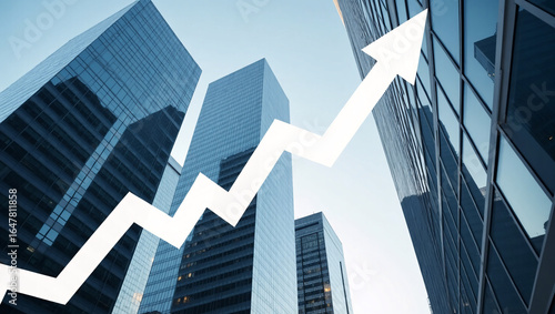 Skyscrapers with an upward trending graph, representing economic growth or business success.