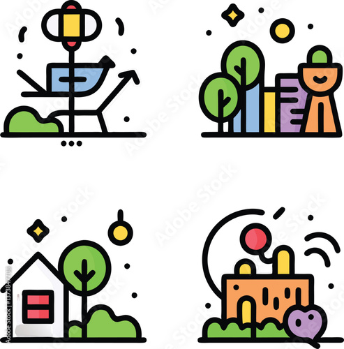 Smart City Map Navigation Icons Set Flat Vector Illustrations of GPS, Urban Map, and Route Planning Concepts