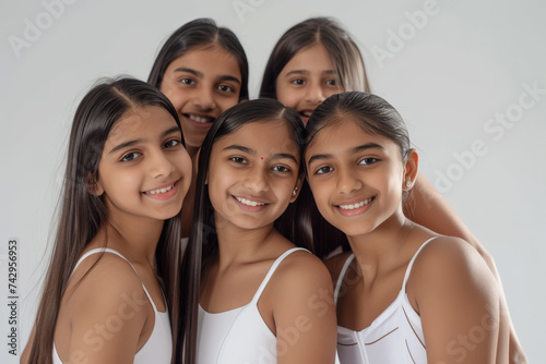 Smiley Indian Teenagers in Swimsuits and Sneakers Studio Portrait