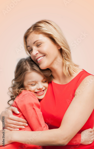smiling mother and daughter hugging