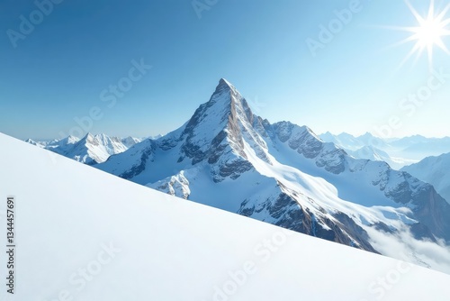 Snow-covered mountain peak, brilliant white expanse, untouched landscape, scene, summit