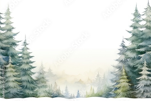 Snowy fir tree border land landscape outdoors.