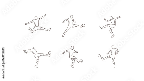 Soccer Player Action Poses Line Art Illustrations for Sports Designs