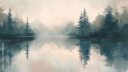 Soft and dreamy water reflection of trees and diffused light creating a peaceful and tranquil abstract natural scene