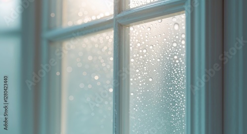 Soft Focus Window with Droplets in Cool Daylight.