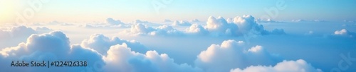 Softly descending clouds veil the blue expanse, gentle, serene