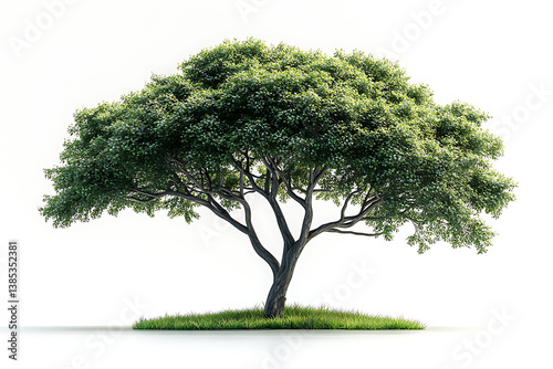 Solitary Tree With Lush Green Canopy On White Background Illustration