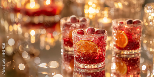 Sophisticated spiced cranberry punch in crystal glasses