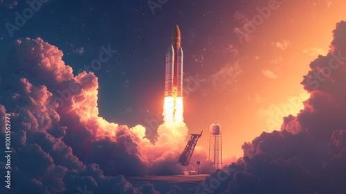 Space rocket launch. 3d render.