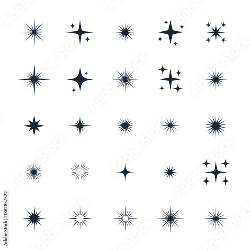 Sparkle Starburst Icons Set – Twinkle Light Shapes for Decoration, UI & Graphic Design