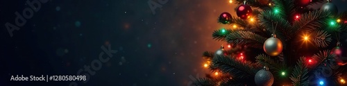 Sparkling Christmas tree with colorful lights and ornaments, holiday, Christmas tree