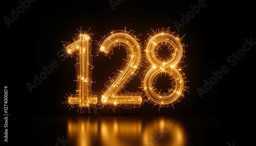 Sparkling Number 128: Festive Light Trails and Glowing Celebration