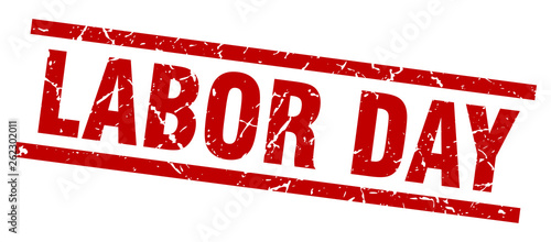 square grunge red labor day stamp