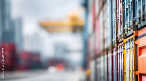 Stacked shipping containers at port representing global trade and logistics, concept of import export business and international commerce