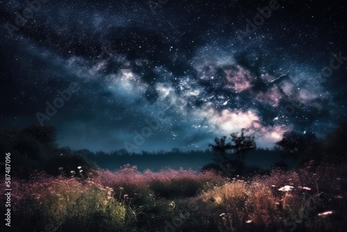 starry night sky with clouds. Generative AI