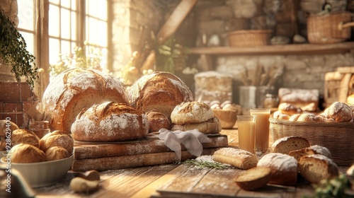 Step into a bustling bakery, where the scent of freshly baked bread and pastries fills the air.