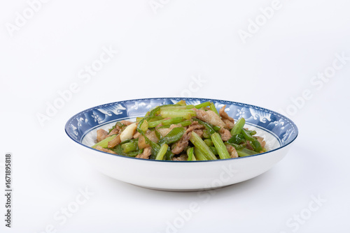Stir-fried pork with celery on the plate