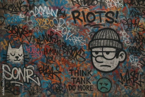Street art graffiti wall texture with urban tags and spray paint artistic expression