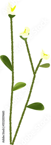 Stylized White Lily Buds on Green Stems