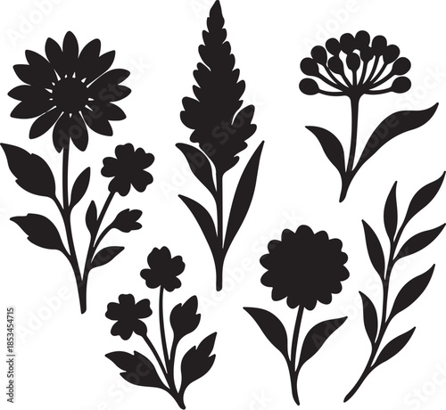 Sun-Field Petal Breakout Bouquets Five Airy Floral Silhouettes.eps
