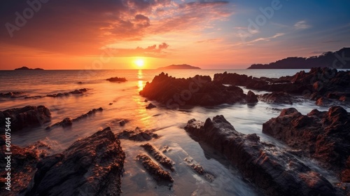 Sunrise at rocky beach in Terengganu, Malaysia