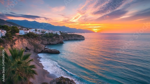 Sunset in Spain's Andalusia area, near Nerja (Malaga). lovely view of the Alboran Sea.