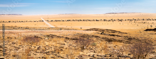 Surreal panorama of the Namib desert going towards solitaire and sossusvlei