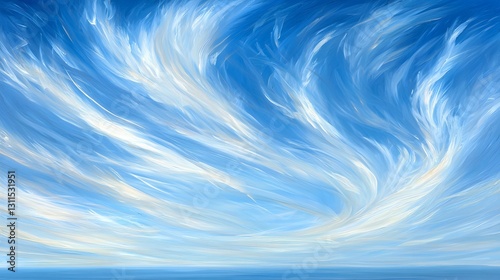 Swirling clouds and blue sky creating a beautiful airy landscape painting