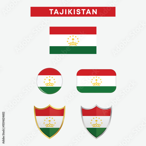 Tajikistan country flag, country flag button, and shield vector design