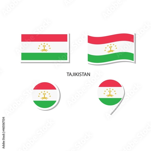 Tajikistan flag logo icon set, rectangle flat icons, circular shape, marker with flags.