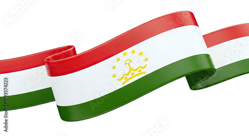 Tajikistan Flag Ribbons on White Background