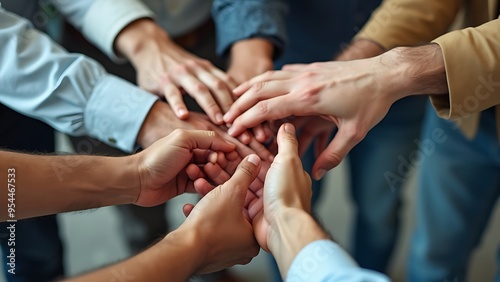 Teamwork and partnership concept with diverse hands united for success. Symbolizing unity, collaboration, and mutual support in achieving common goals.