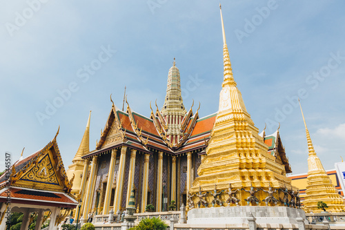 The beauty of the Emerald Buddha Temple . And while the gold of the temple catching the light. This is an important buddhist temple of thailand and a famous tourist destination.