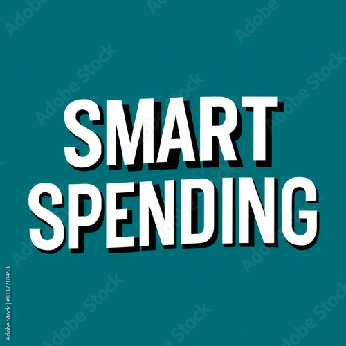 The image depicts the phrase 'Smart Spending' on a teal background.