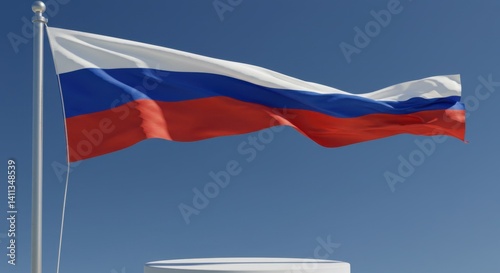 The Majestic Russian Flag billowing in the wind against a clear blue sky