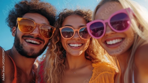 Three friends enjoy a sunny day at the beach, sharing smiles and laughter.