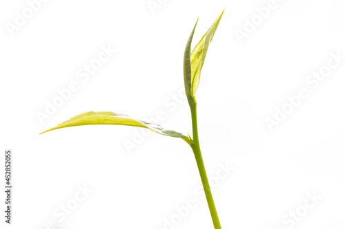 Top tea leaves, natural products, are ingredients in making beverages. Selected fresh tea leaves in tea plantations