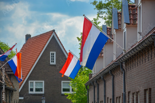 Traditional birthday celebration of King of the Netherlands Willem-Alexander, King's Day national holiday on April 27, Dutch flag