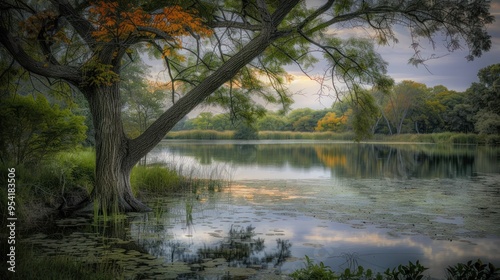 Tranquil Pond Surrounded by Autumn Trees