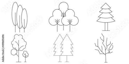 Tree and Forrest Icons Symbols. Tree vector set. Linear icon collection. Forest, park and garden trees isolated sign pack.