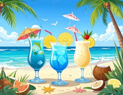Tropical cocktails on a sandy beach