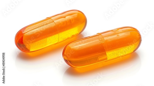 Two orange transparent oval pill tab isolated on white background