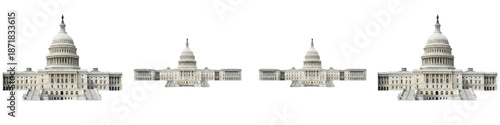 United States Capitol Building Set – Washington DC Government Landmark Isolated on White Background