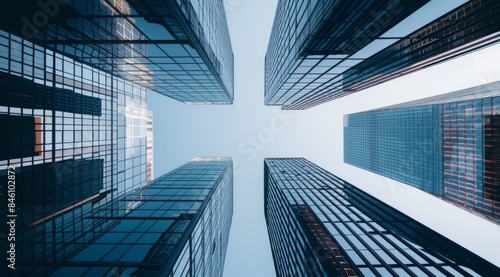 Urban high-rise office building, commercial building,. The grandeur and scale of some tall buildings. This photo shows the high-rise office tower as a symbol of corporate power and innovation.