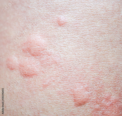urticaria on skin. rashes, of which urticaria and toxic erythema are the most common.