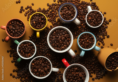 Variety Of Coffee Cups And Mugs On Rustic Table For Morning Beverage Concept Photography