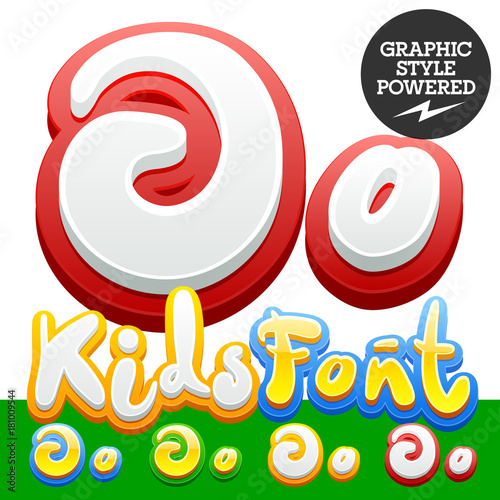 Vector hand written funny Alphabet set of sticker Children font. Different graphic style. Letter O